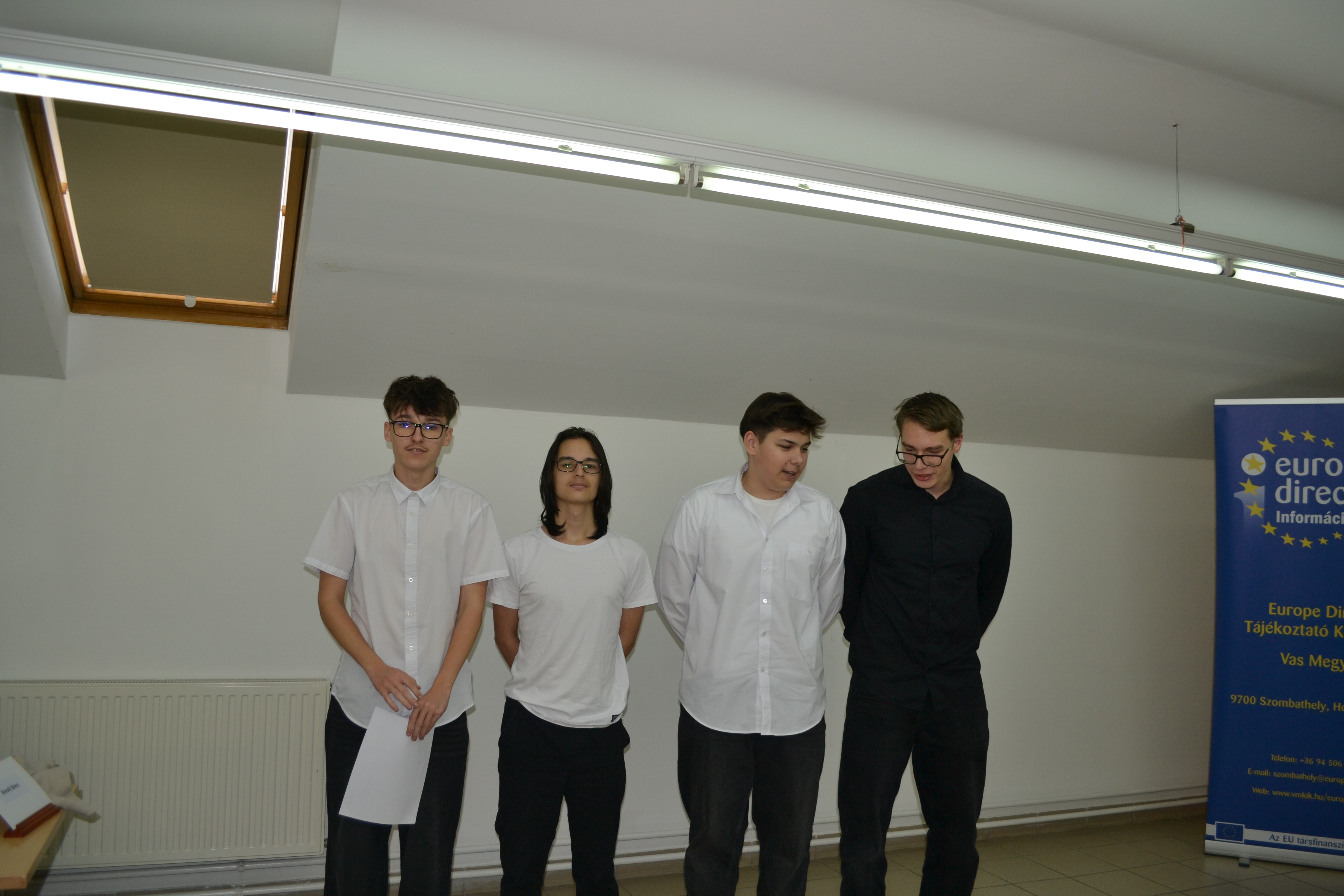 A regionális döntőt a szombathelyi Nagy Lajos Gimnázium csapata nyerte. Felkészítő tanár: Dr. Vigné Csordás Rita