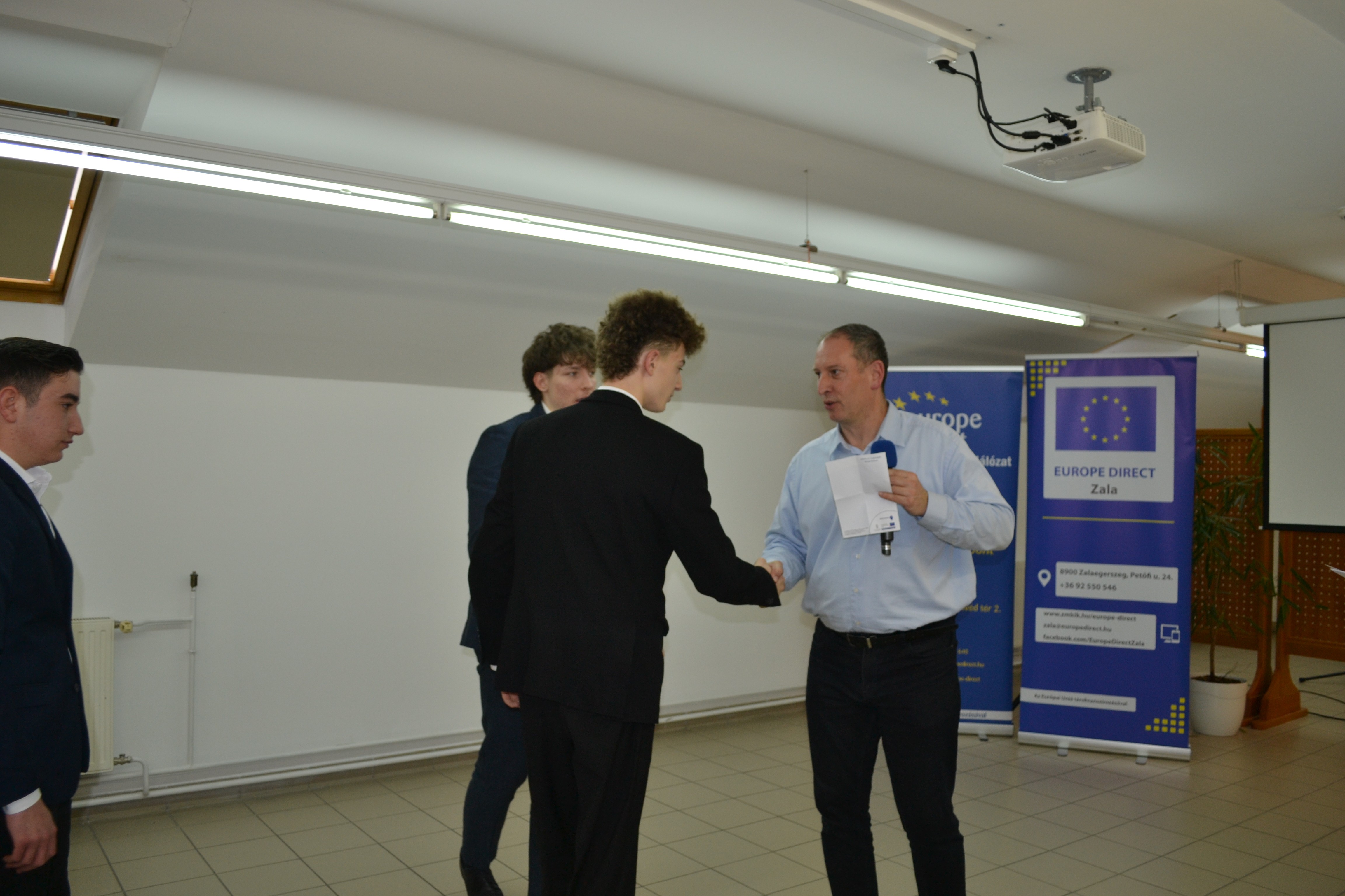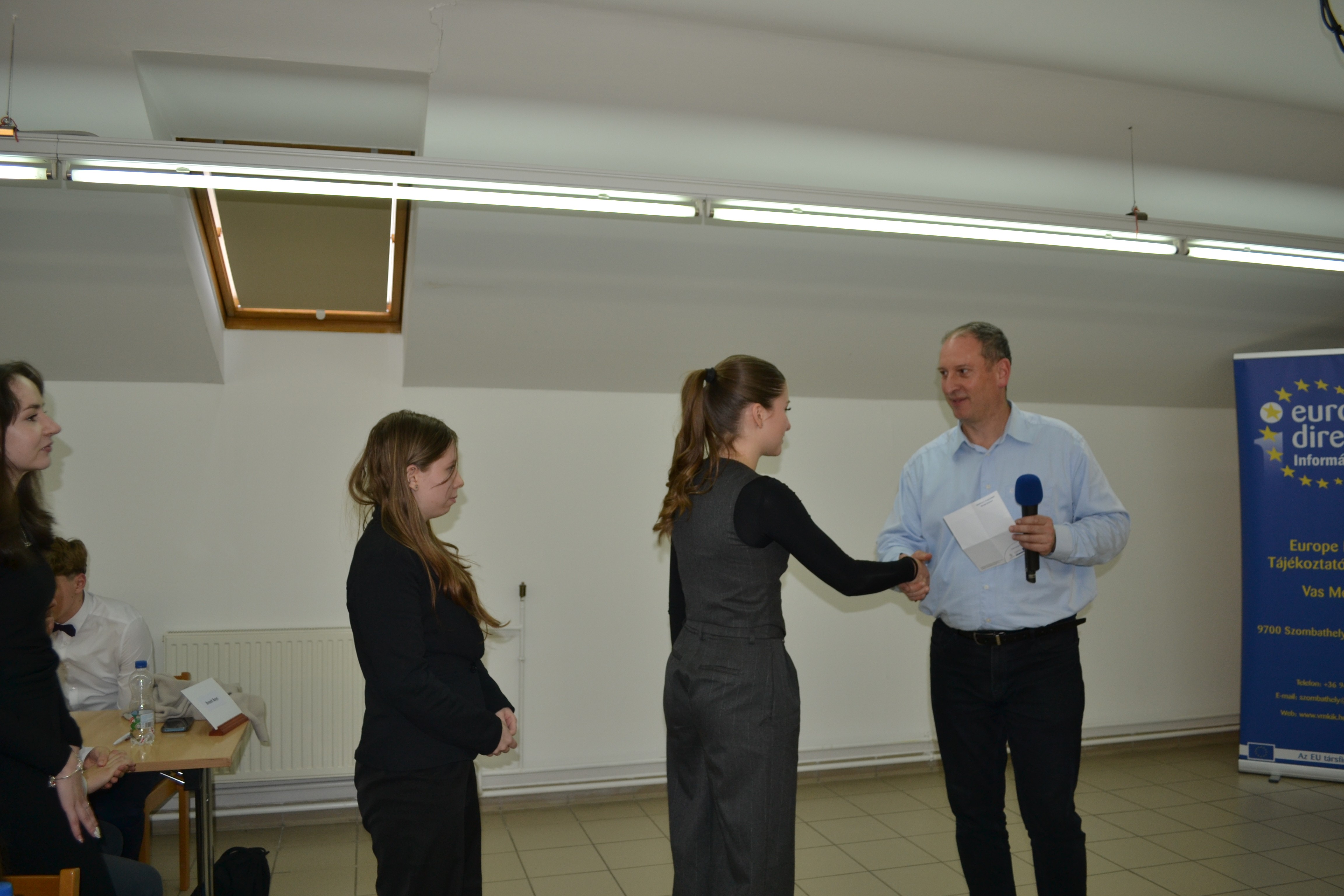 - Az országos döntő első és második helyezett csapatának iskolája és felkészítő tanára Strasbourgban (Franciaország) EUROSCOLA programon vehet részt az Európai Parlament Magyarországi Kapcsolattartó Irodájának felajánlásából 2026 első felében.