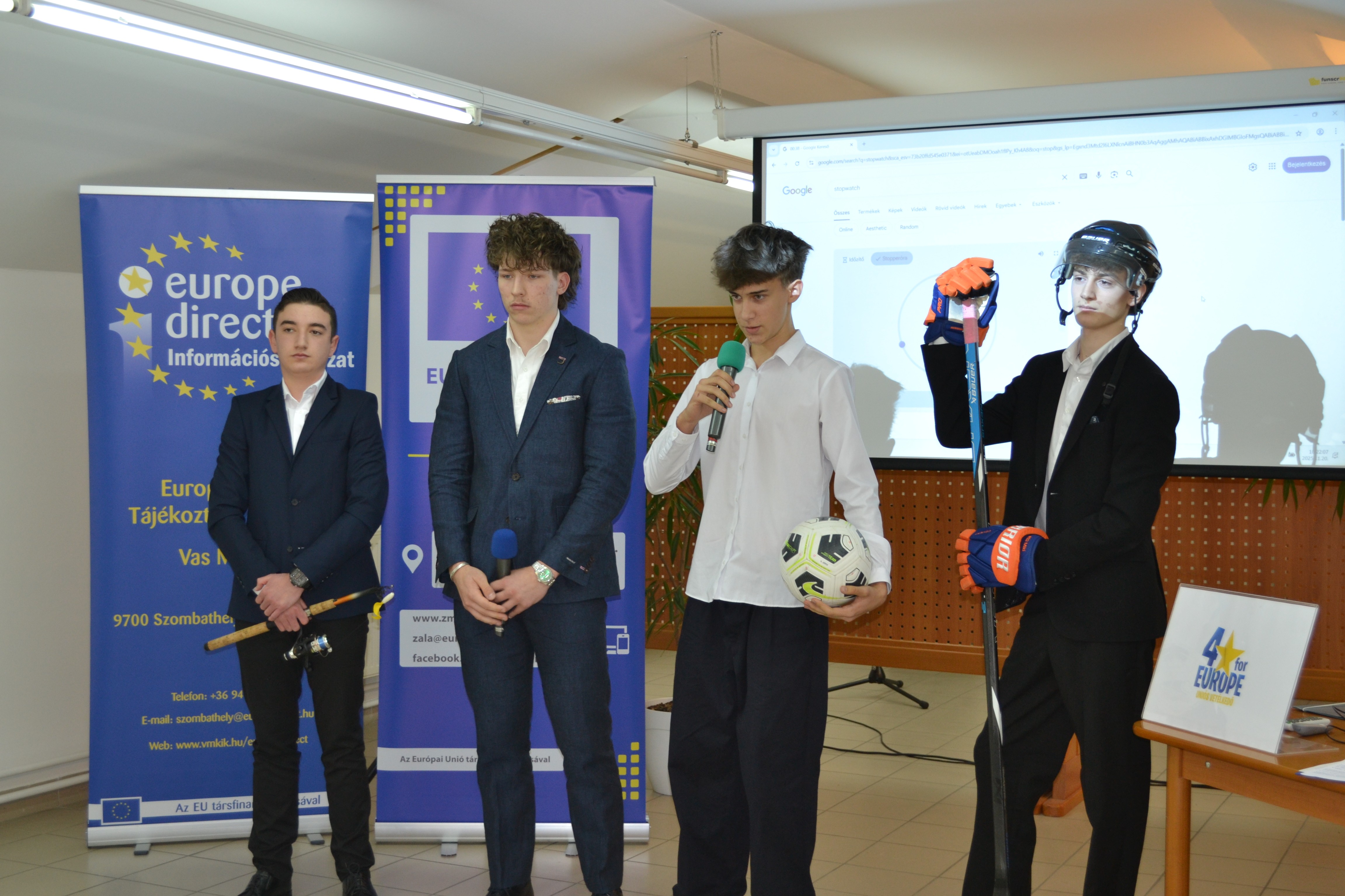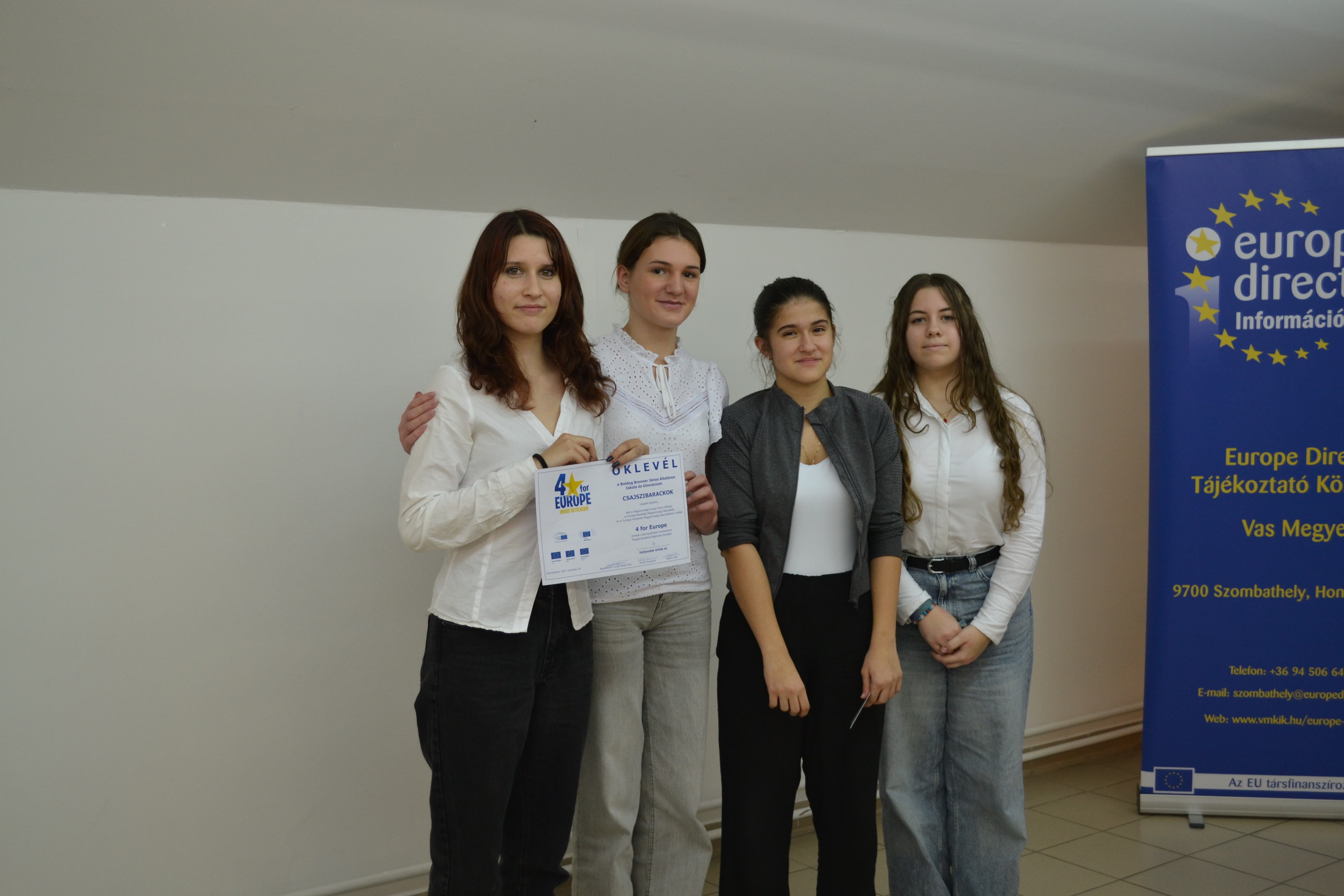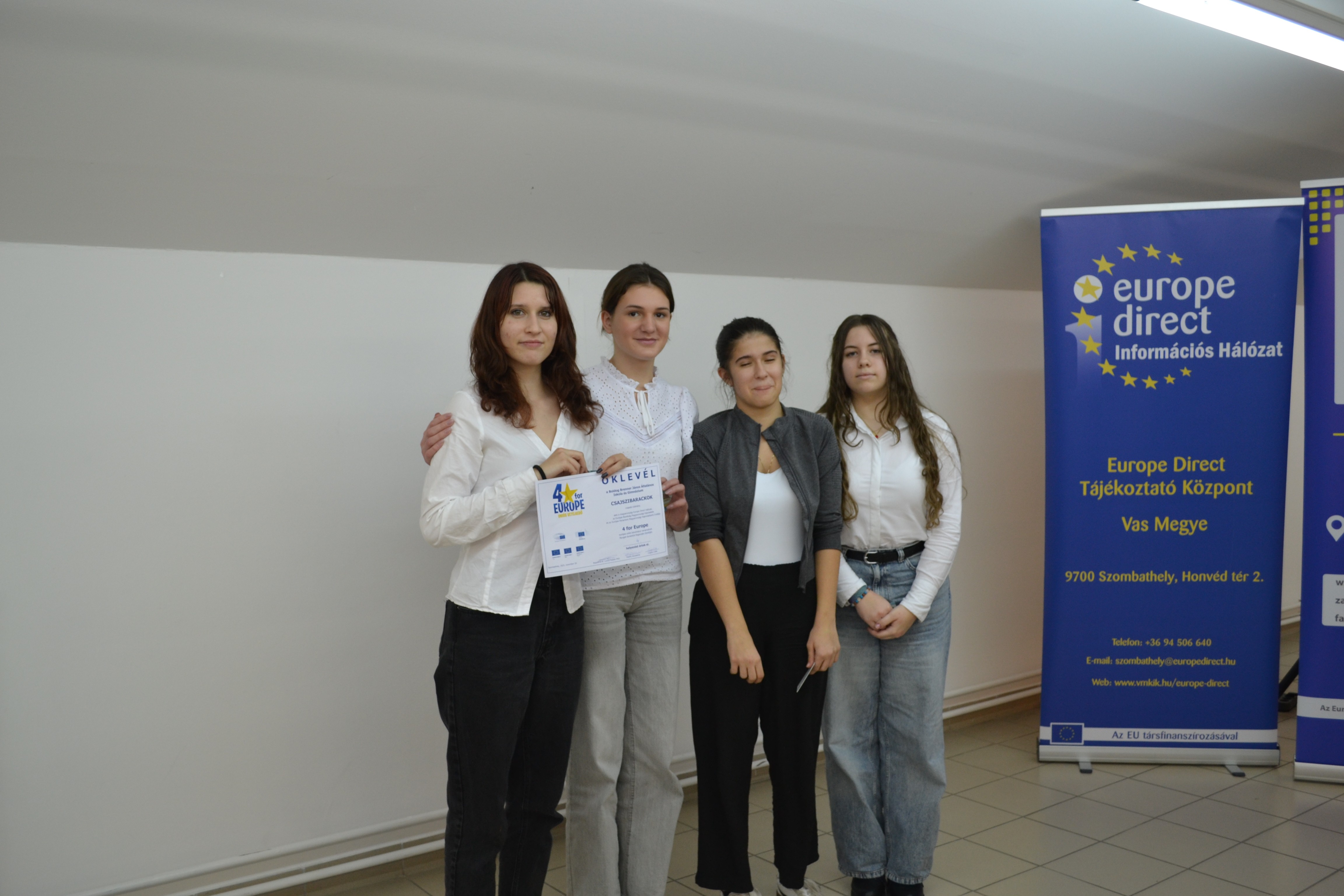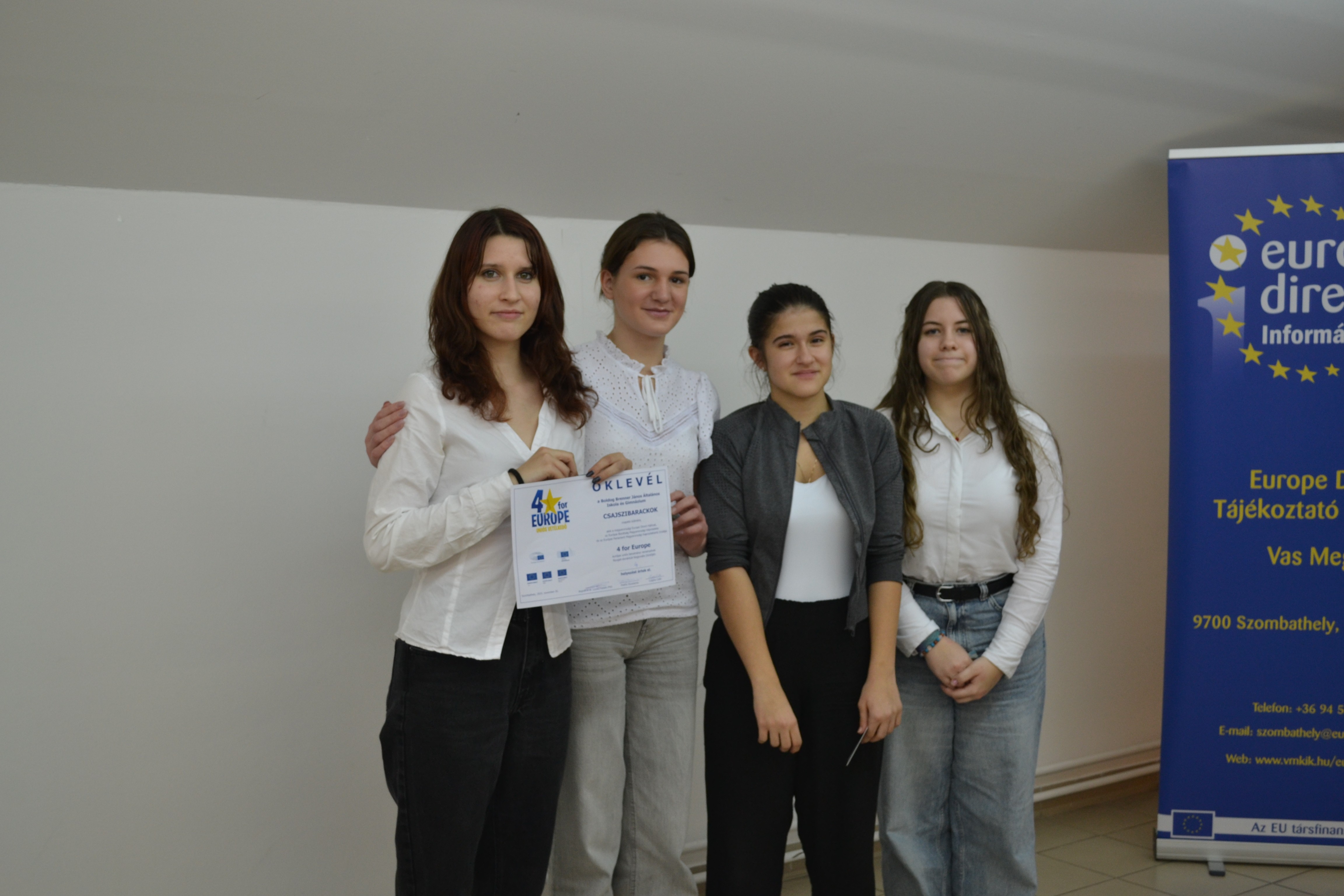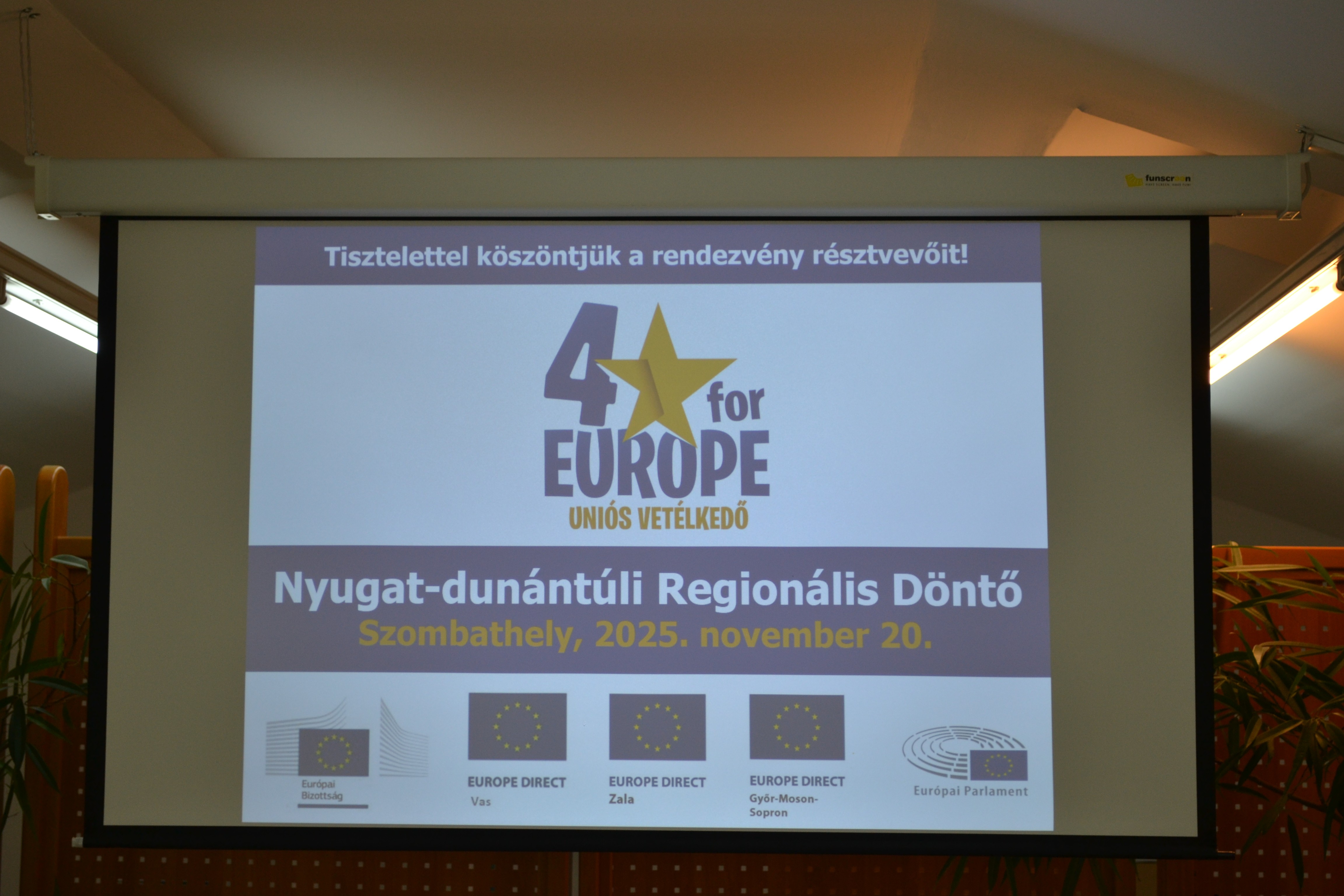 A magyarországi Europe Direct Hálózat, az Európai Bizottság Magyarországi Képviselete és az Európai Parlament Kapcsolattartó Irodája 4 for EUrope címmel európai uniós tematikájú vetélkedőt hirdetett 2025. szeptemberében – immáron 13. alkalommal – középiskolás diákoknak Magyarország Európai Unióhoz való csatlakozásának 21. évfordulója alkalmából.A regionális döntőt a szombathelyi Nagy Lajos Gimnázium csapata nyerte.