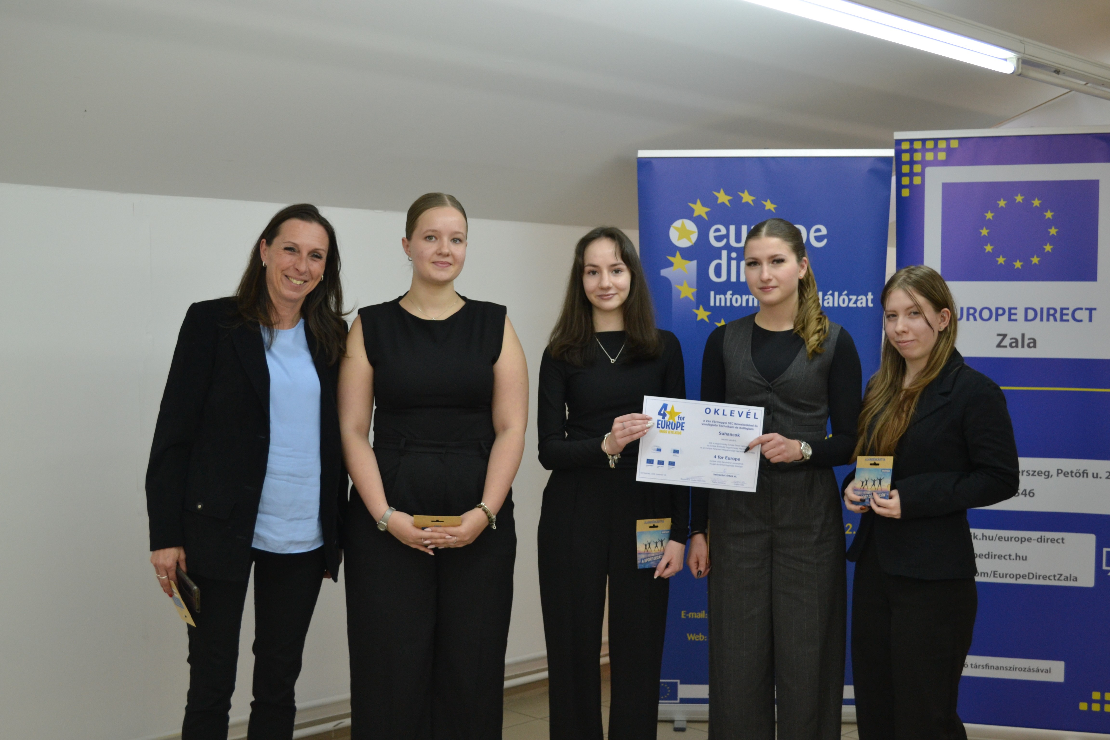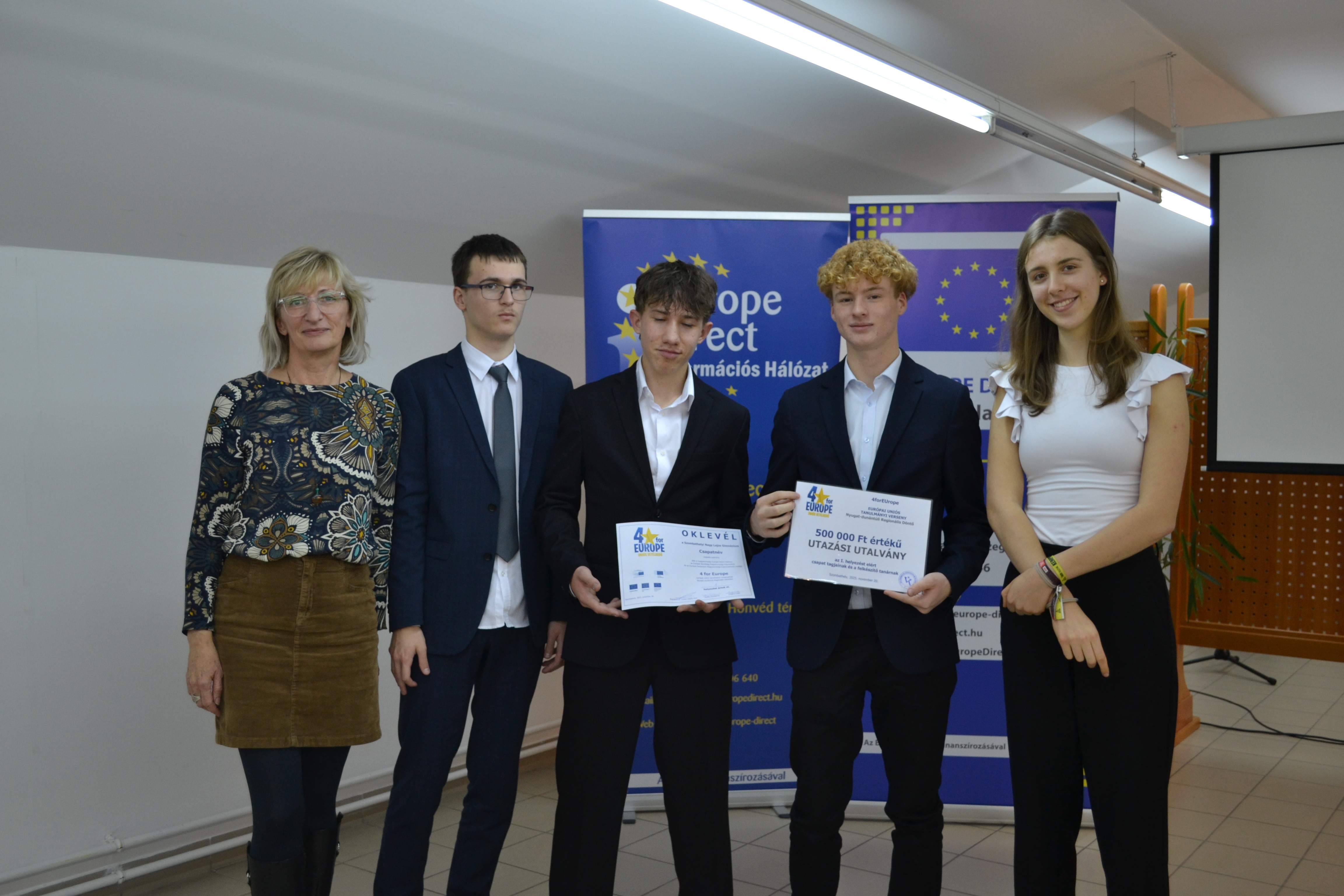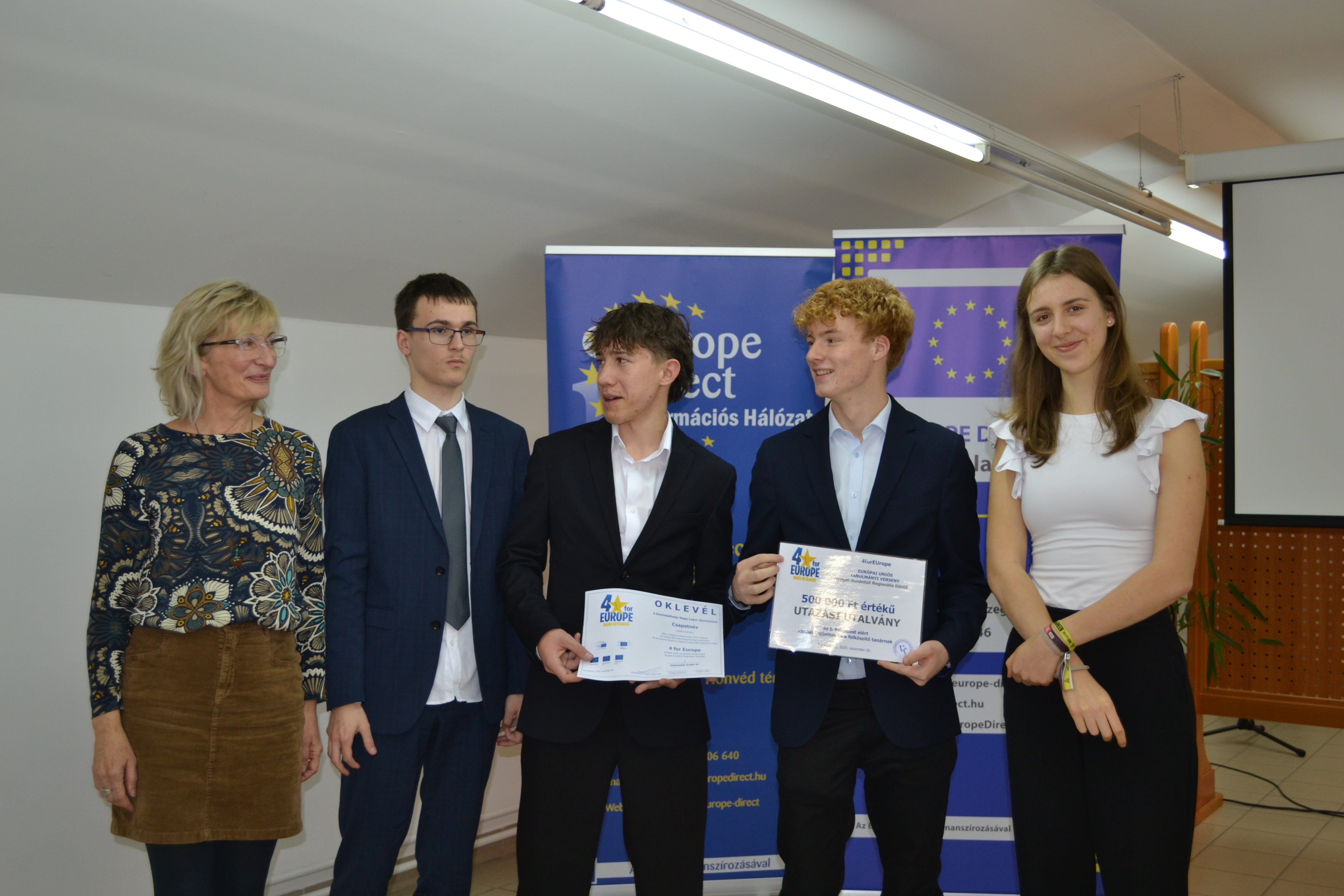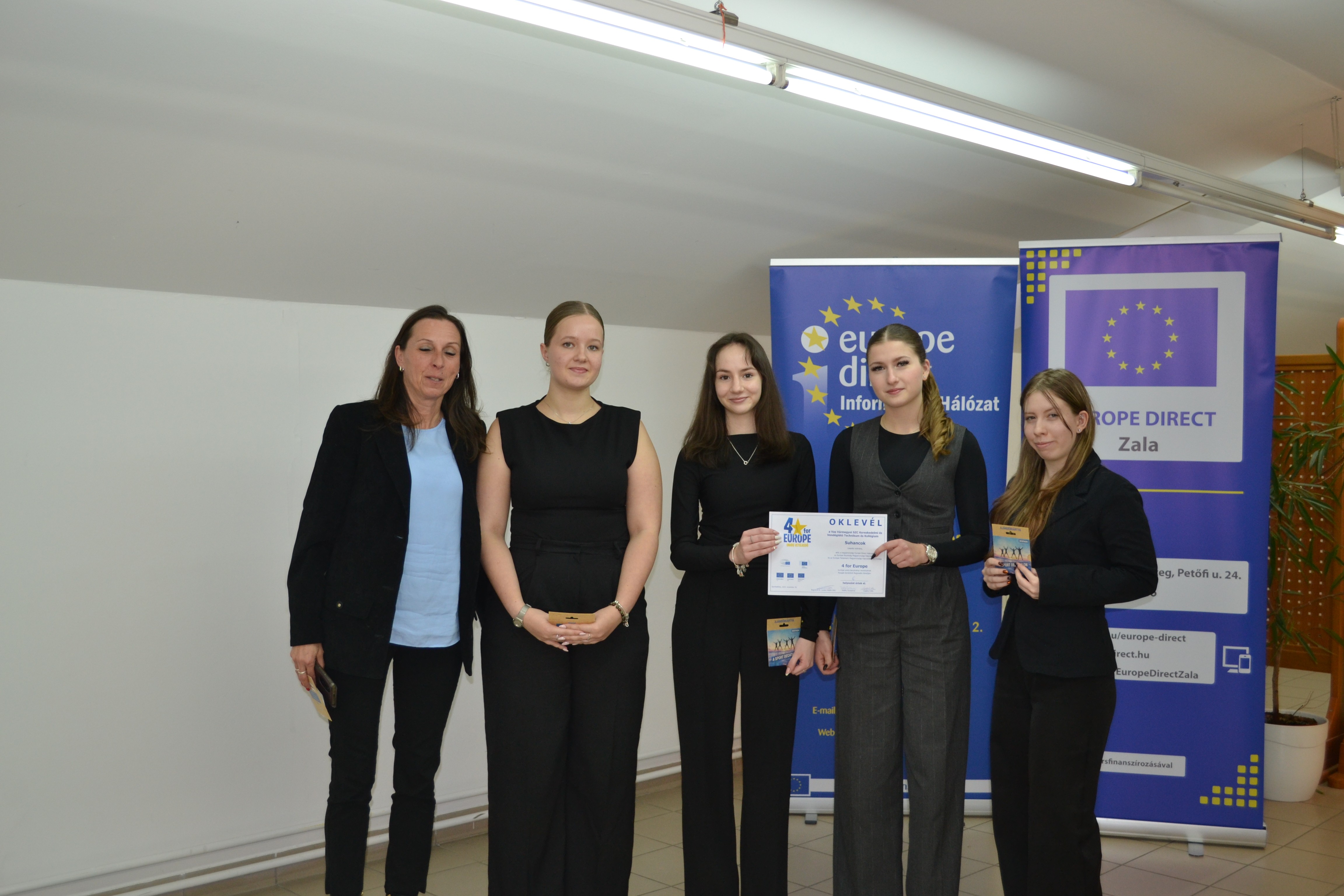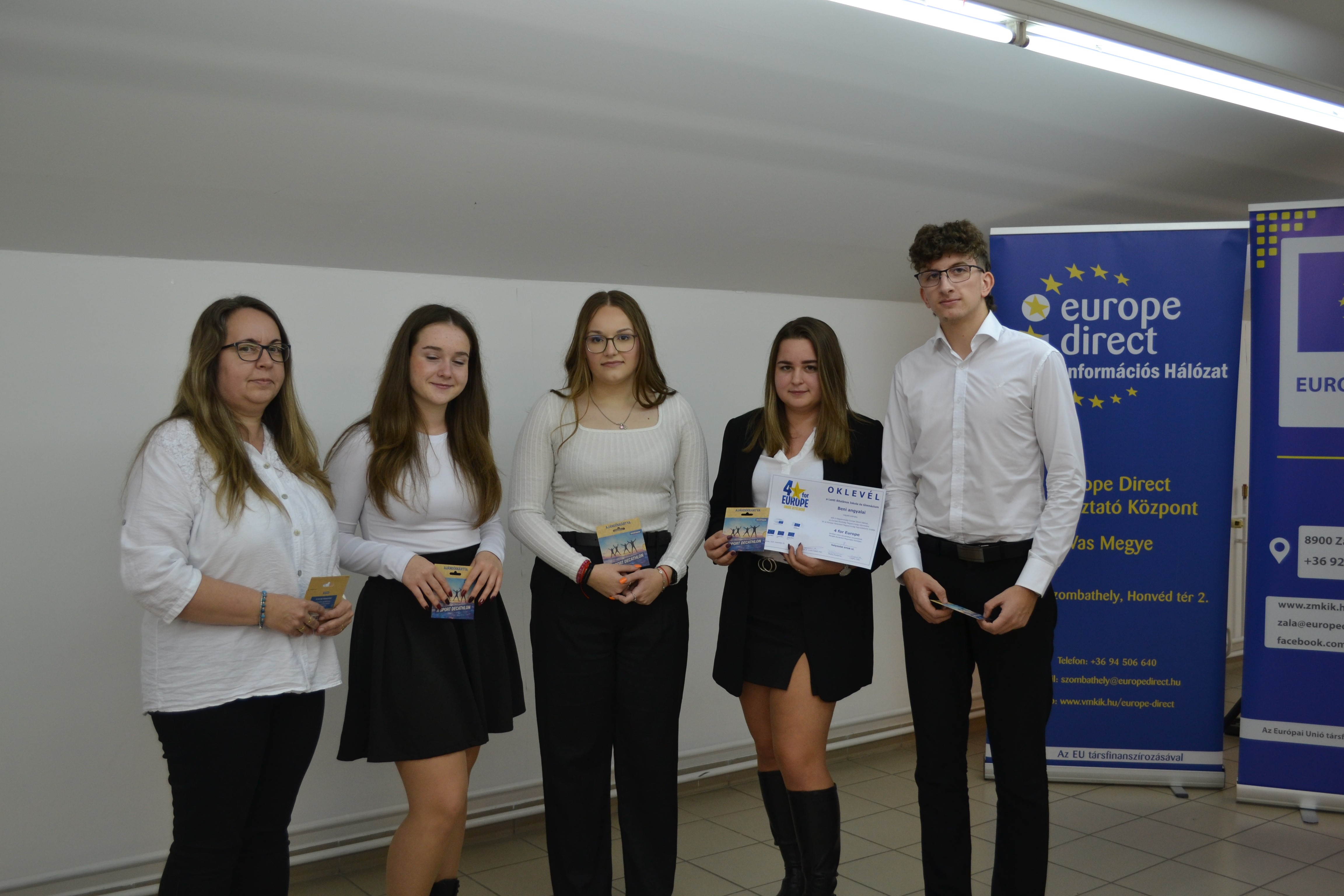 A magyarországi Europe Direct Hálózat, az Európai Bizottság Magyarországi Képviselete és az Európai Parlament Kapcsolattartó Irodája 4 for EUrope címmel európai uniós tematikájú vetélkedőt hirdetett 2025. szeptemberében – immáron 13. alkalommal – középiskolás diákoknak Magyarország Európai Unióhoz való csatlakozásának 21. évfordulója alkalmából.A regionális döntőt a szombathelyi Nagy Lajos Gimnázium csapata nyerte.