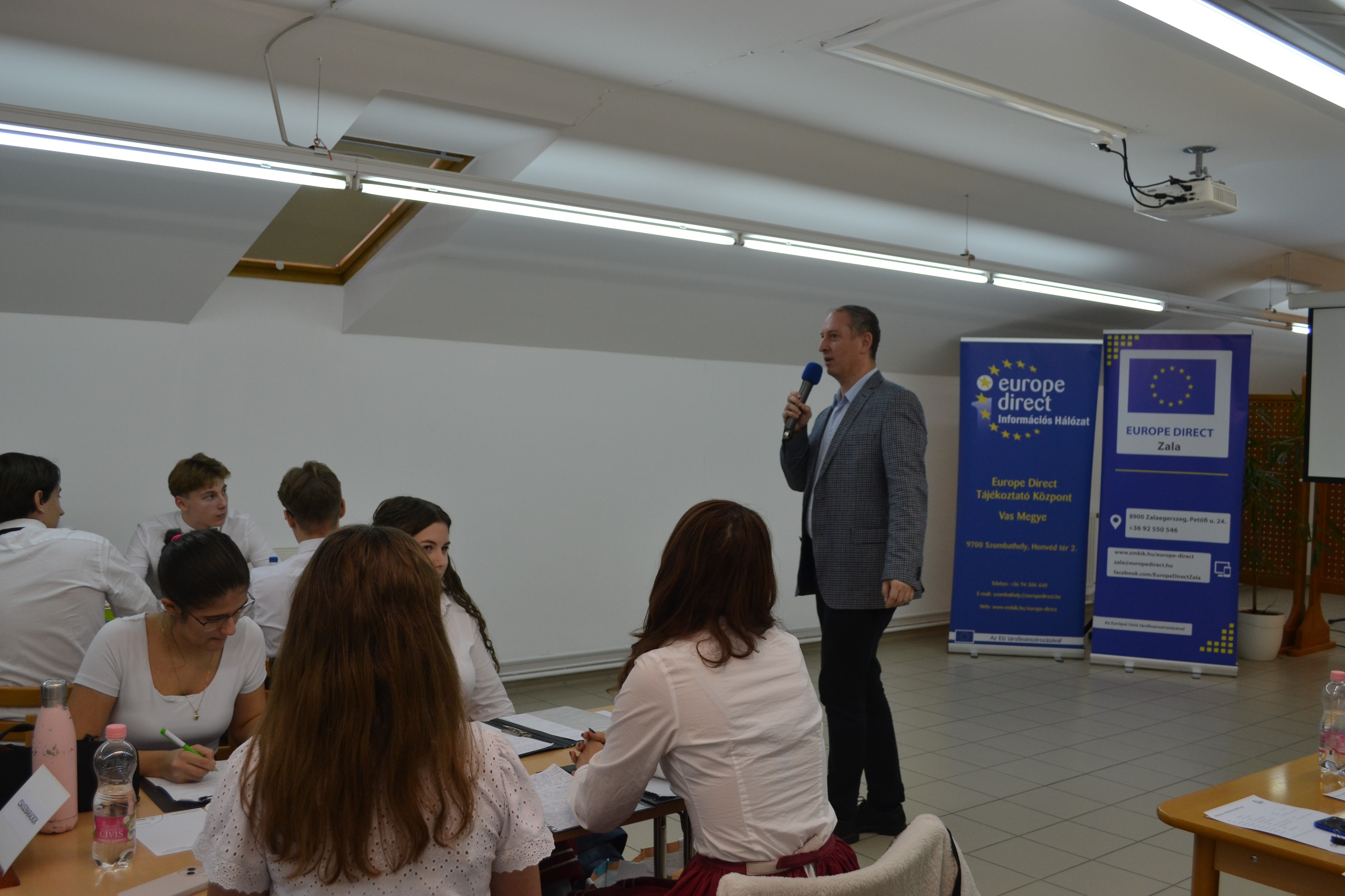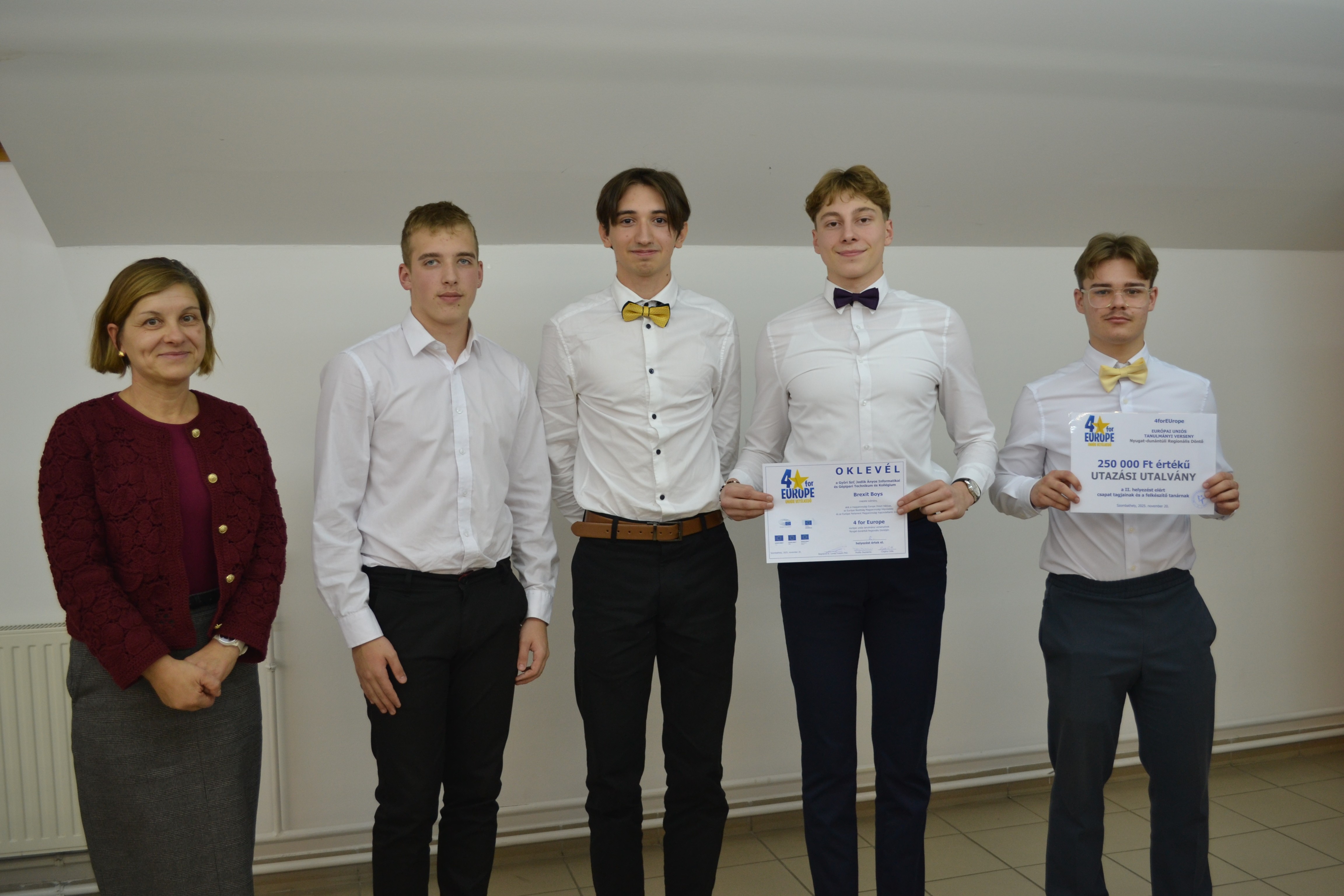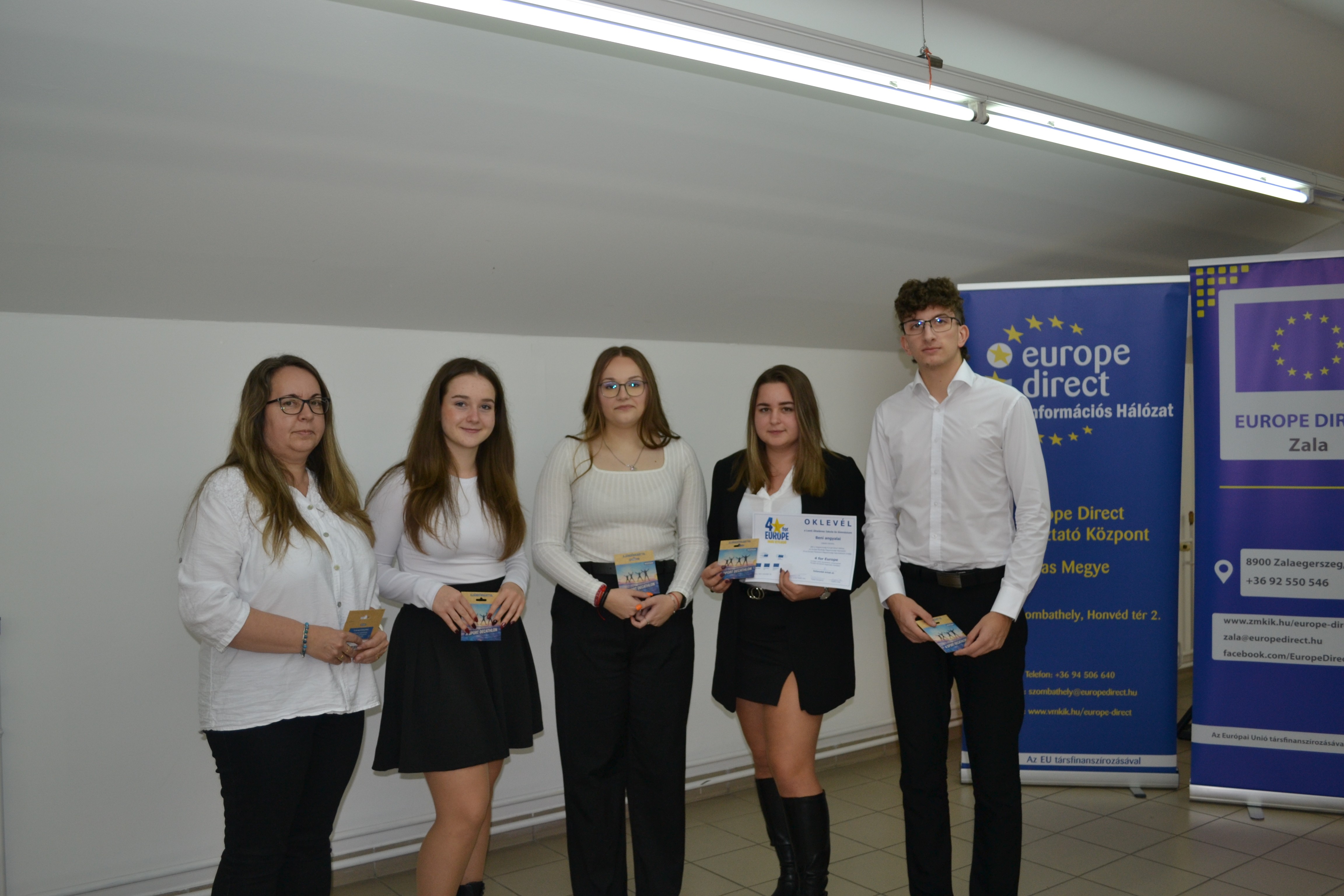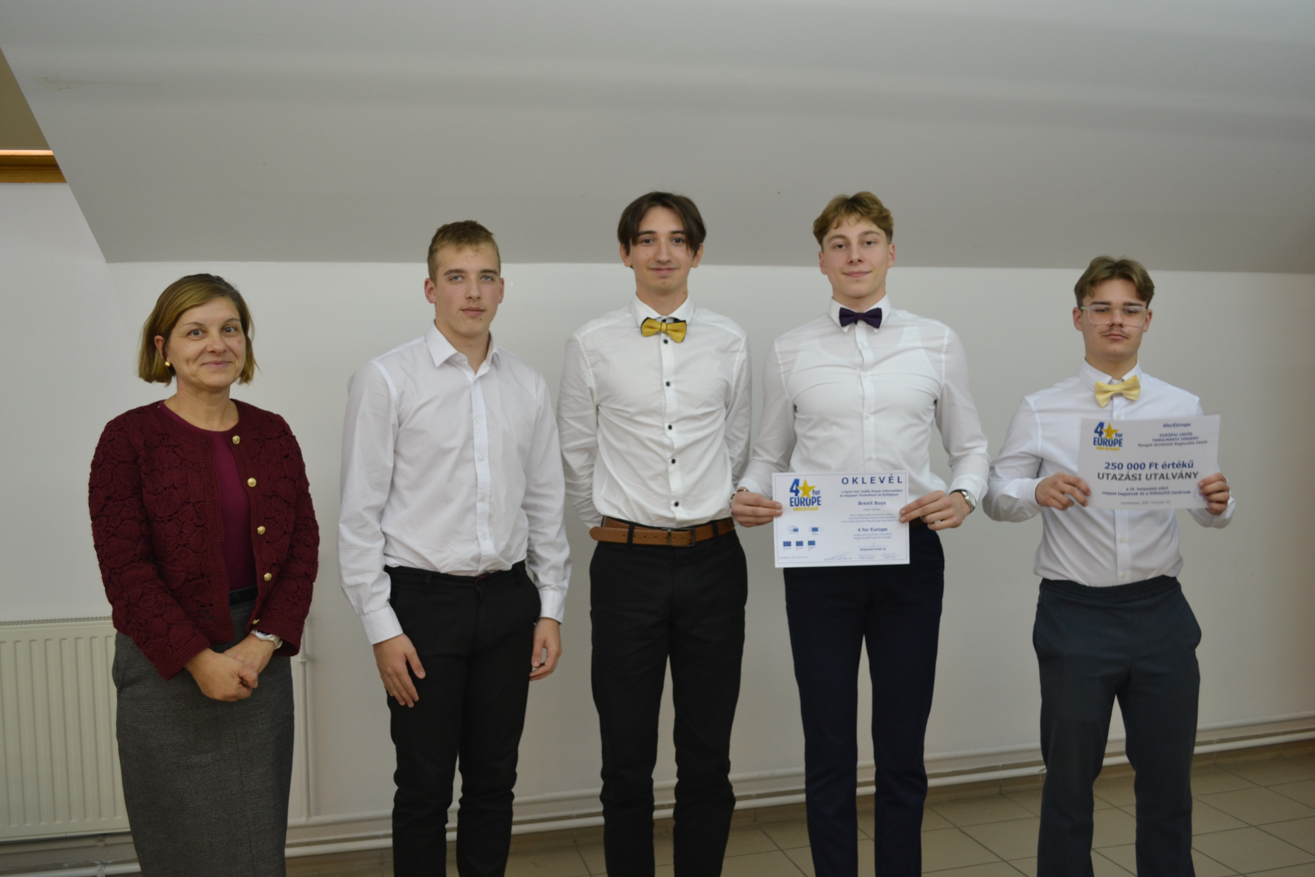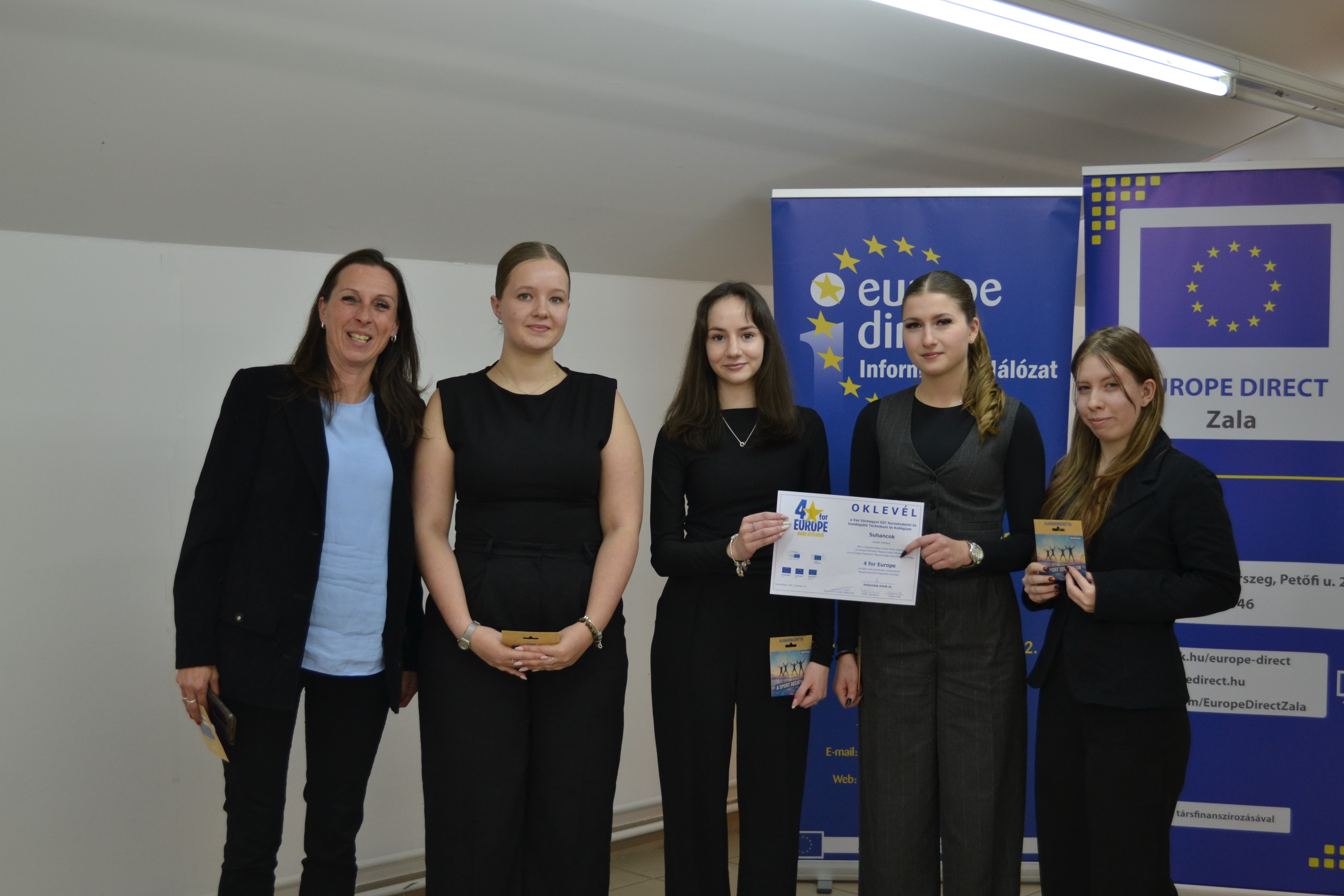 A magyarországi Europe Direct Hálózat, az Európai Bizottság Magyarországi Képviselete és az Európai Parlament Kapcsolattartó Irodája 4 for EUrope címmel európai uniós tematikájú vetélkedőt hirdetett 2025. szeptemberében – immáron 13. alkalommal – középiskolás diákoknak Magyarország Európai Unióhoz való csatlakozásának 21. évfordulója alkalmából.A regionális döntőt a szombathelyi Nagy Lajos Gimnázium csapata nyerte.