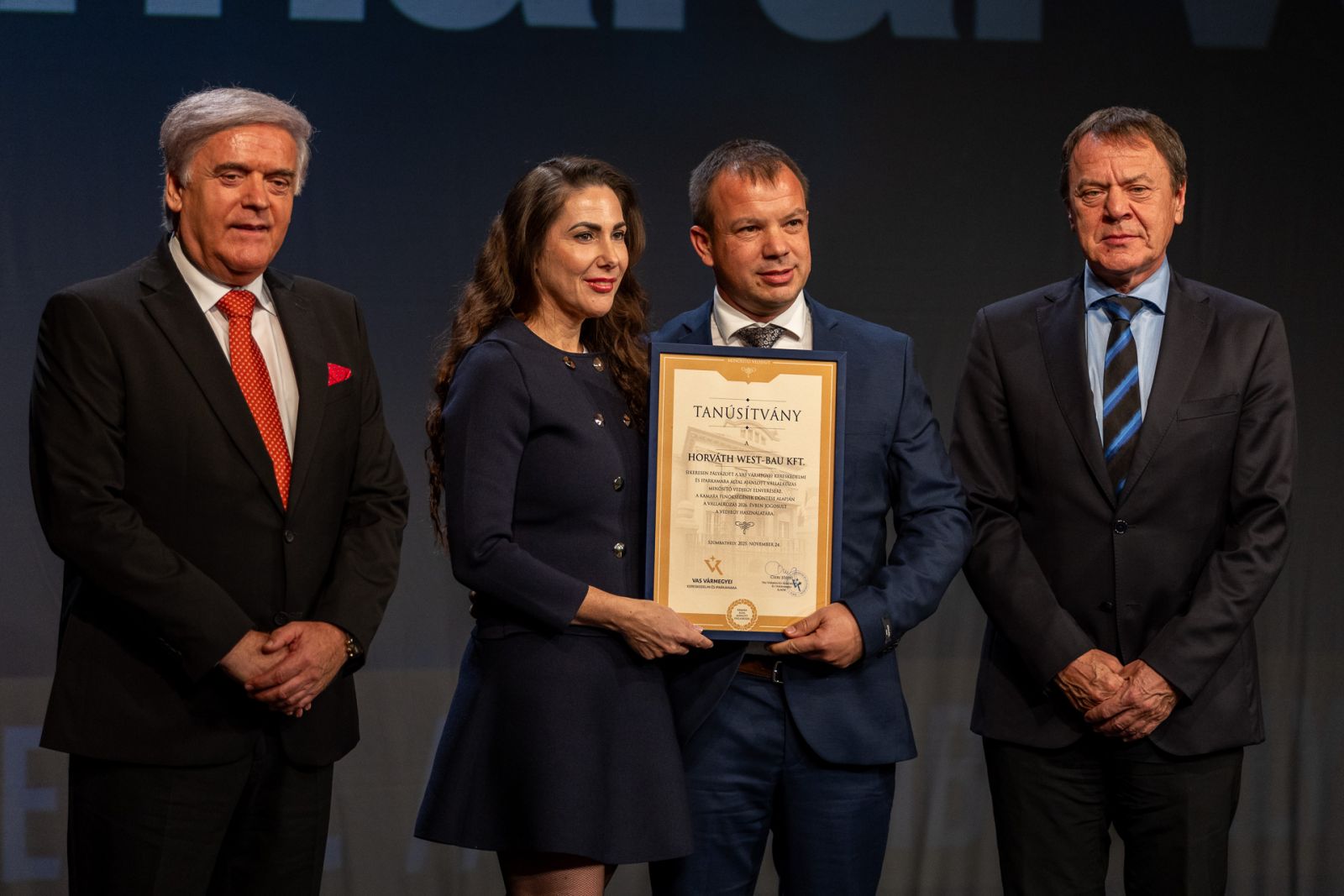 A 2019-ben alakult HORVÁTH WEST-BAU építőipari Korlátolt Felelősségű Társaság fő tevékenységei között családi házak kivitelezése, szerkezetépítés és családi házak GENERÁLKIVITELEZÉSE szerepel. A tervezéstől a kulcsrakész kivitelezésig, de kész tervek esetén a kivitelezési munkálatokat is vállalják. Elsődleges szempontjuk a minőség, a megbízhatóság, a gyors reakciókészség, és magas fokú innovatív gondolkodás. 2. alkalommal nyerte el a díjat.